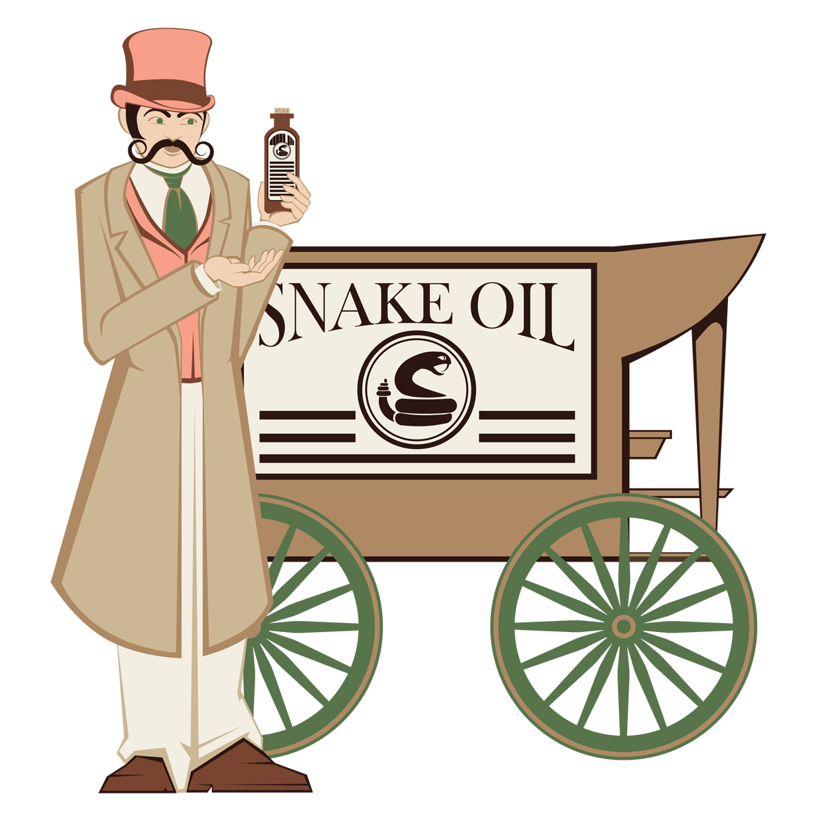 During that week of seminars I heard many manufacturers speak about the virtues of their products.  As I was listening to everyone’s new and improved product story my eyes grew wider, and smile bigger, as I realized that every fertilizer company big and small was now (and finally!) talking the carbon story.  How interesting!  There were examples of how wonderful kelp meal is; stories about microbial stimulation discoveries, but best of all the big boys are selling their wonderful new discovery “Humic Acid”.    Snake Oil Salesman