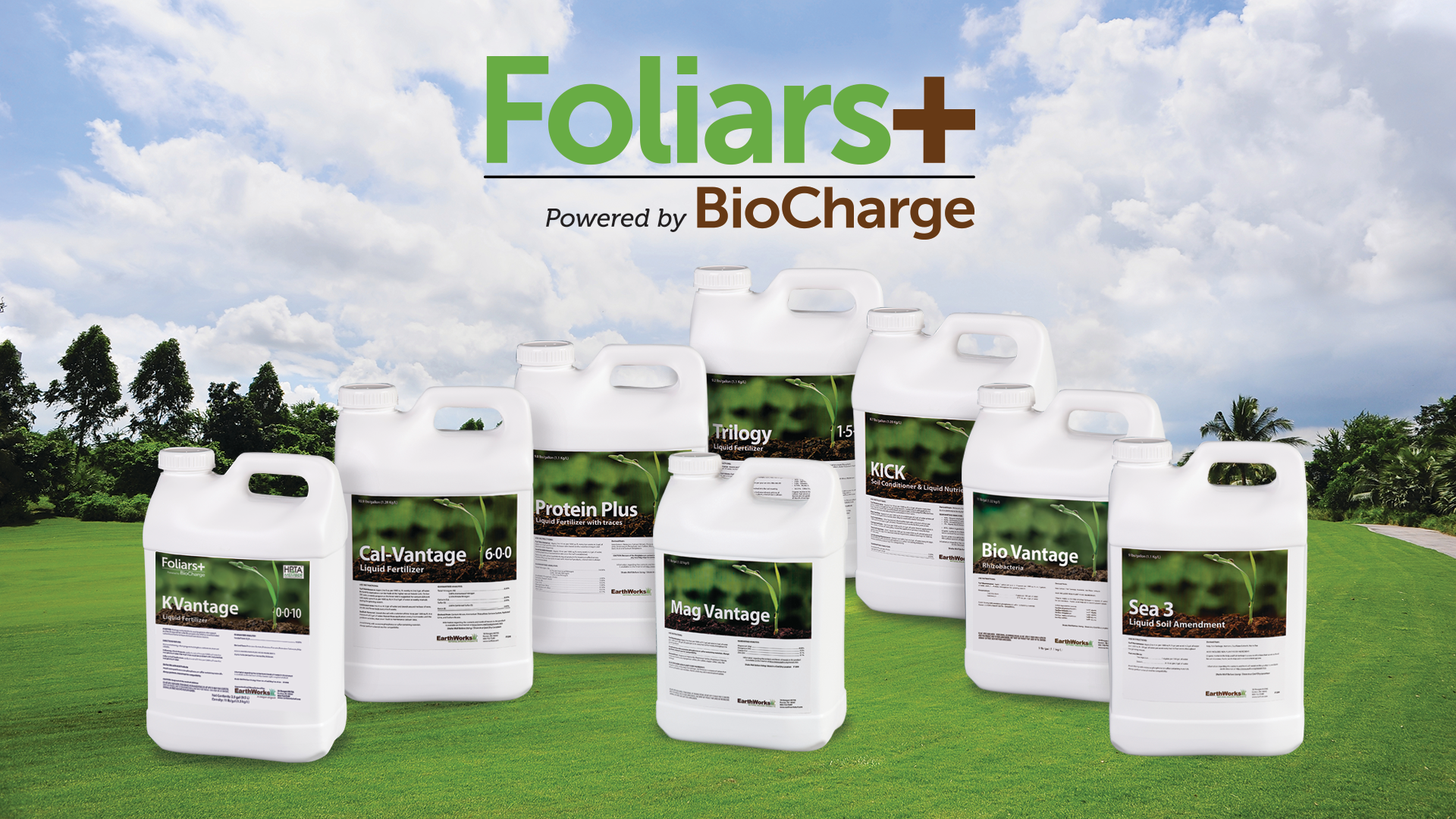 EarthWorks Foliars+ liquids powered by BioCharge: